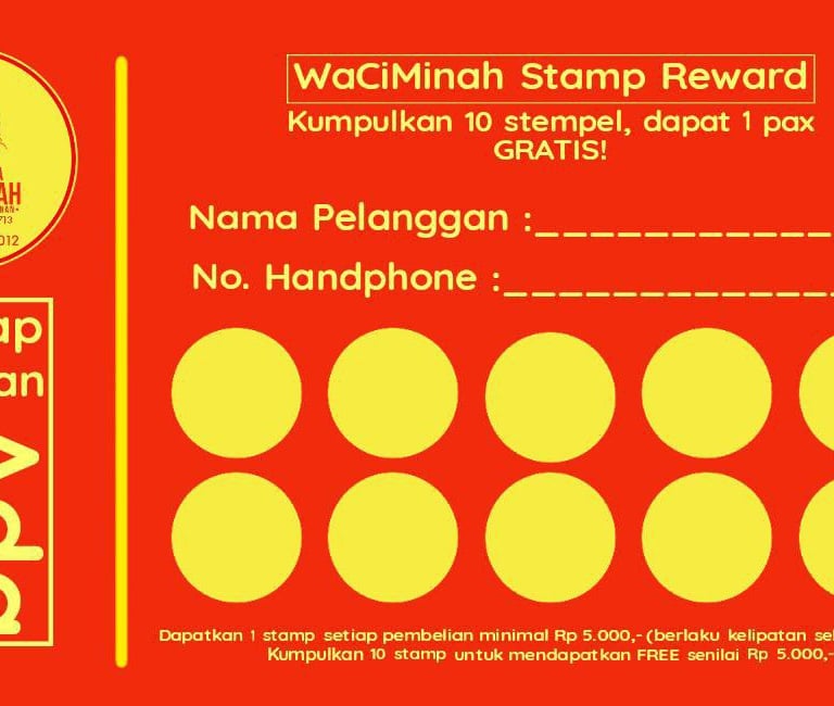 DAPATKAN 1 stamp setiap pembelian 5000 kumpulkan 10 stamp untuk mendapatkan "free seharga 5000"